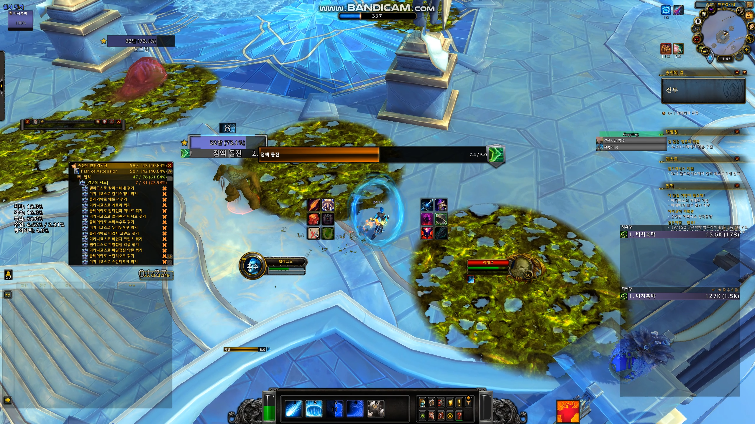 스크린샷처럼 4마리의 쫄이 생성됩니다. 그런데 이쫄을 1번이나 2번스킬로 잡으면 안됩니다. 쫄체력이 많아서 쫄은 무조건 4번스킬로만 잡아야 합니다. 즉 1번 2번으로 보스를 딜하고 3번으로 무적을 쓰면서 4번을 쓸수있을때마다 쫄과 네임드가 같이 맞게 하여서 잡으면 됩니다.