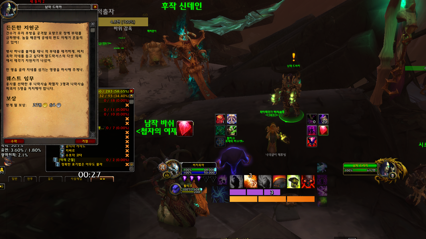 그리고 습격일때 랜덤으로 퀘스트 4개를 주는데 강령군주 습격이면서 남작 드라카가 든든한 지원군 퀘스트를 줄때만 가능합니다.