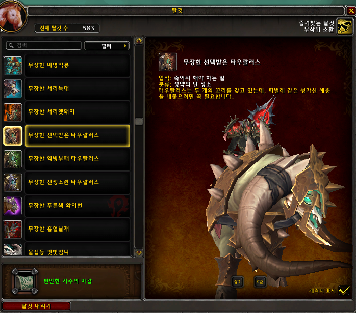 무장한 선택받은 타우랄러스 탈것은 강령군주만 획득가능하고 업적인