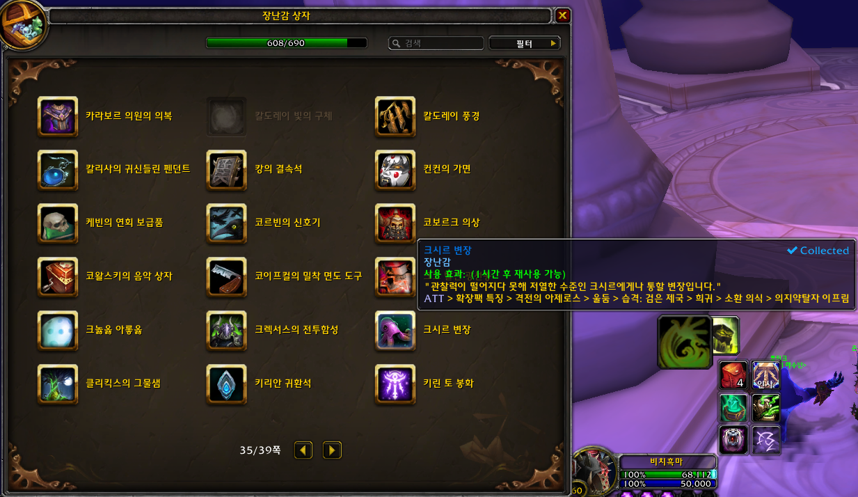 크시르 변장 장난감은 격전의 아제로스 확장팩 장난감으로 울둠에 검은제국 습격이 왔을때만 획득가능합니다.