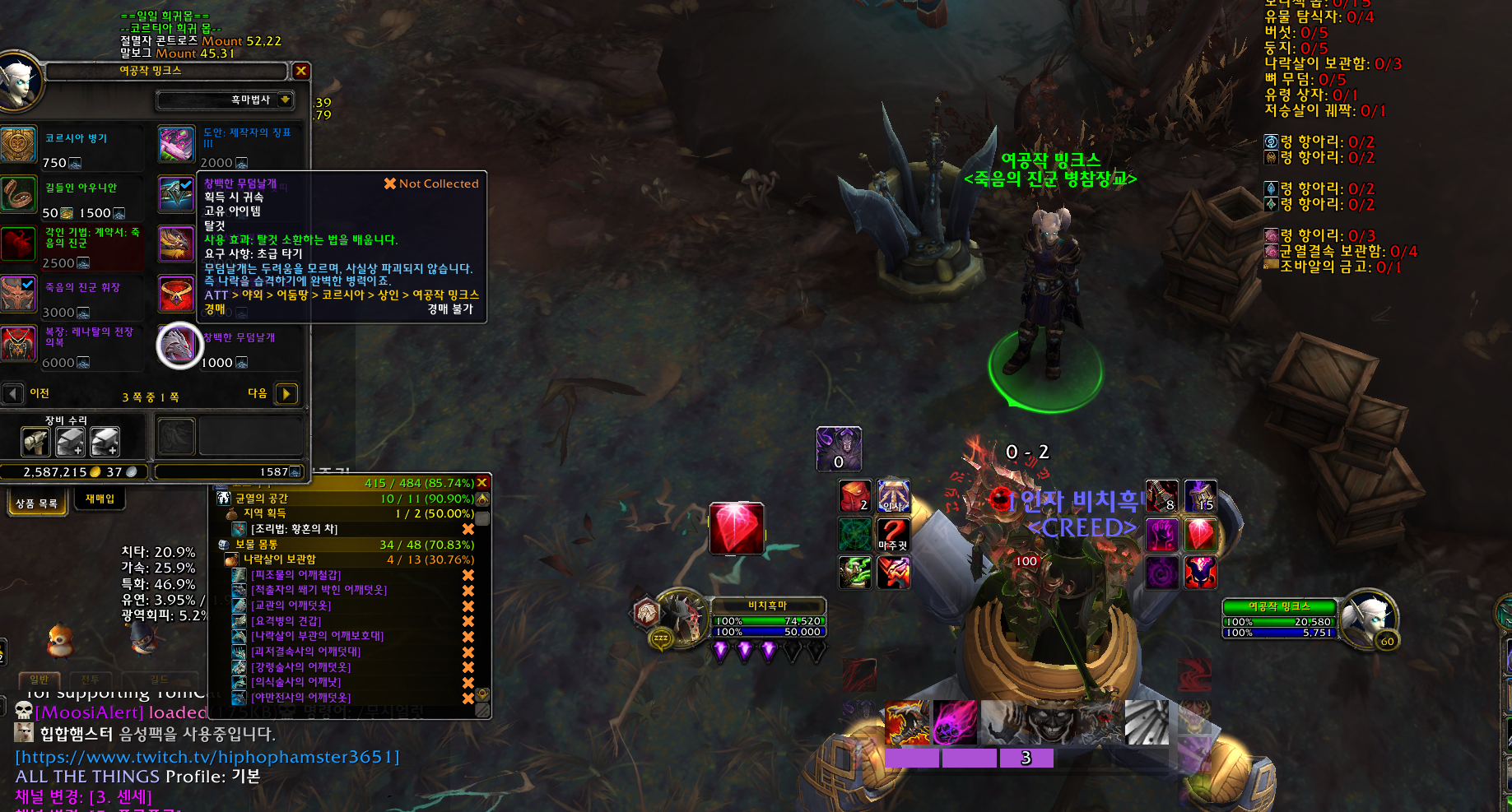 창백한 무덤날개를 사서 4개를 다 구매완료하였습니다. 나락과 코르시아를 더이상 안하니까 저승석이 모자라네요....